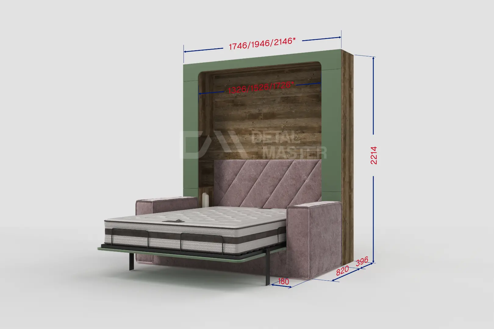 Шкаф-кровать без дивана "Premium Nova Comfort" Balance 2.0 работает на механизме раскладывания собственной разработки "Balance". Кровать раскладывается легким движением руки, превращаясь в полноценное спальное место. Просто потяните за ножку-маятник, которая самостоятельно фиксируется в нужное положение при опускании.